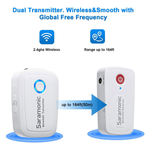 این سیستم پیشرفته استفاده آسانی دارد و فقط کافیست آن را روشن کنید تا گیرنده و فرستنده با هم جفت شده و آماده بکار شوند. این سیستم در فرکانس بدون تداخل 2.4 گیگاهرتز کار میکند و کانالیابی آن بطور خودکار انجام میشود تا بهترین کانال را انتخاب کند. فرستنده Blink 500 دارای دکمههایی برای افزایش و کاهش گین است.