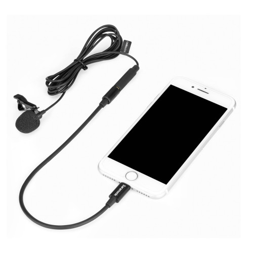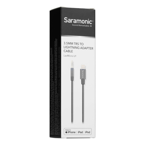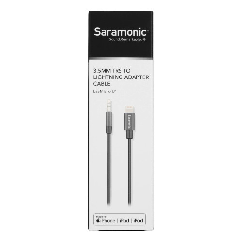 میکروفون Saramonic LavMicro U1A از آداپتور لایتنینگ استفاده میکند و قابلیت اتصال و جدا شدن دارد؛ در انتهای دیگر این محصول فیش 3.5 میلیمتری نری است و زمانیکه از این کابل به همراه این میکروفون استفاده نمیکنید، میتوانید از این آداپتور برای اتصال سایر منابع صوتی به دستگاه Apple استفاده کنید.