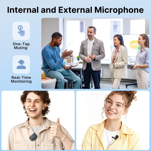 این میکروفون یقهای از طریق ارتباط بیسیم کار میکنه و مجهز به رابط Type-C هست. همین ویژگی باعث شده تا به راحتی با دستگاههای مدرن مثل گوشیهای هوشمند جدید، لپتاپها و حتی بعضی از دوربینها سازگار باشه. میکروفون داخلی خازنی اون میتونه صدا رو در زاویه 360 درجه دریافت کنه و این یعنی حتی اگه گوینده حرکت کنه، کیفیت و وضوح صدا افت نمیکنه. حداکثر SPL این محصول 120 دسیبل هست که باعث میشه حتی در شرایطی که صداها بلندن هم، کیفیت ضبط همچنان بالا بمونه. منبع تغذیه اون هم باتری داخلیه که برای کار طولانیمدت طراحی شده.
