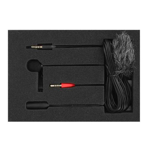| اقلام همراه میکروفون | ۱ عدد فیلتر نرم کننده صدا | ۱ عدد گیره یقه ای | 1 عدد کابل افزایشی TRRS (3خط) |