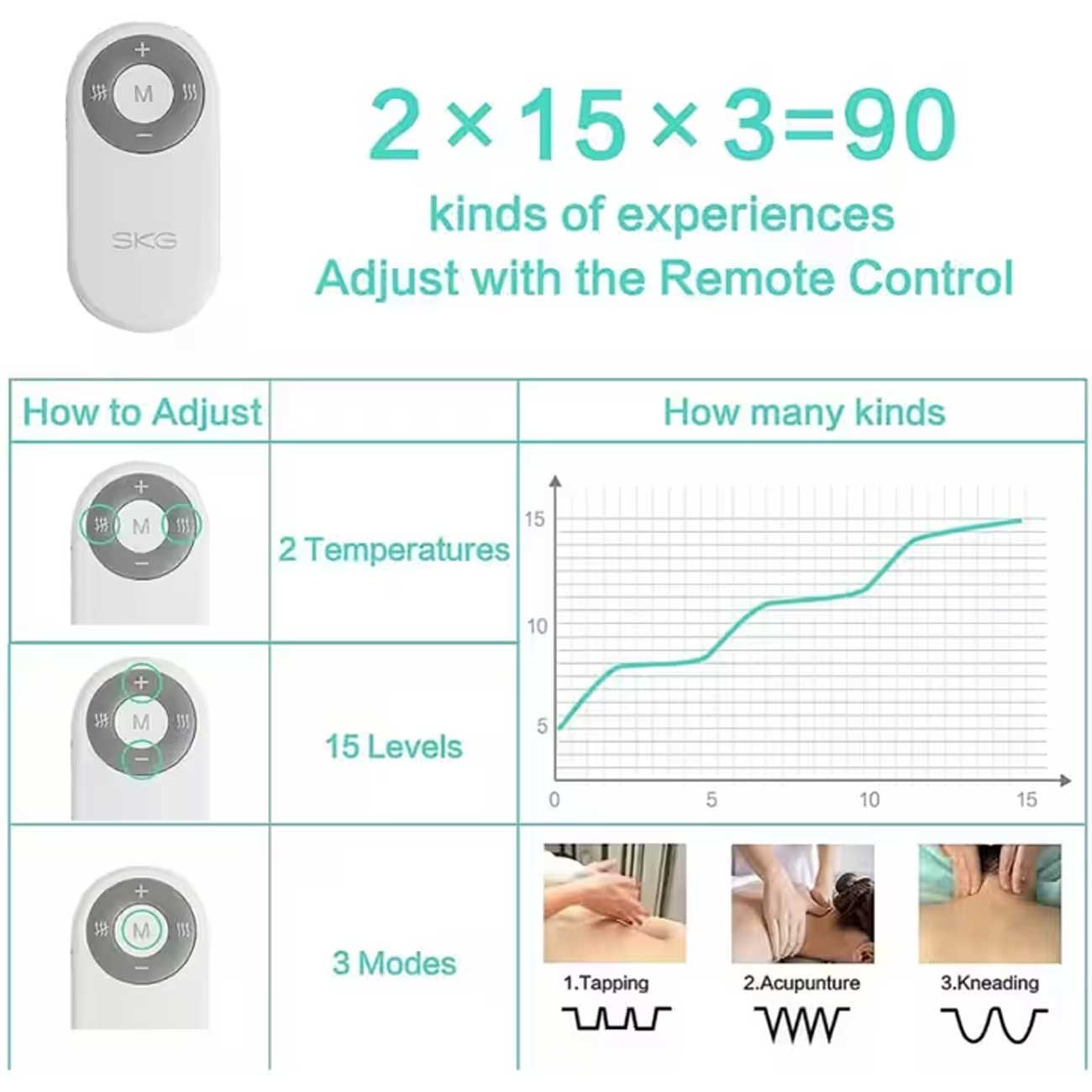 - 3 حالت ماساژ و 15 سطح شدت