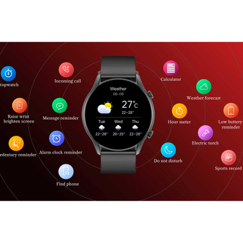 | عملکردها | قابلیت ثبت مسافت ، کالری ، تعداد قدم و آنالیز روزانه | دارای 70 حالت ورزشی مانند دویدن ، تردمیل ، قدم زدن | دارای میکروفون و اسپیکر داخلی جهت برقراری تماس | قابلیت اندازه گیری ضربان قلب و میزان اکسیژن خون | قابلیت پایش کیفیت خواب | قابلیت نمایش وضعیت آب و هوا | پشتیبانی از دستیار صوتی | دارای قابلیت SOS (تماس های اضطراری) | قابلیت تنظیم هشدار (آلارم) ساعت | قابلیت تنظیم نور صفحه ، تم صفحه ، نمایشگر ساعت | قابلیت گذاشتن پسورد | دارای دو بازی Bird Games و Numbers Klotski | دارای Stopwatch و Timer | دارای نور فلش ، ماشین حساب و پیدا کردن گوشی | قابلیت تنظیم ریتم تنفس | قابلیت تشخیص ریتم تنفس | قابلیت ارسال اس ام اس آماده درصورت رد تماس (مخصوص گوشی های اندروید) | قابلیت کنترل صدا و موسیقی | قابلیت پایش وضعیت استرس | قابلیت شخصیسازی واچ فیس | نمایش اعلانهای گوشی و تقویم | هشدار عدم تحرک | قابلیت پایش وضعیت سلامت بانوان | قابلیت تشخیص روحیه | قابلیت اندازه گیری فشار بدن و آنالیز آن |