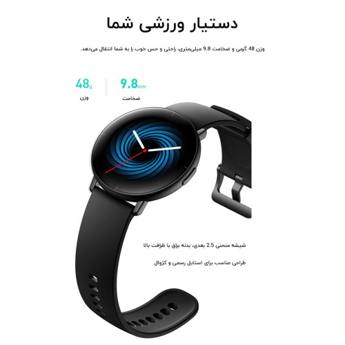 | سایر مشخصات ساعت هوشمند | دارای صفحه نمایش با کیفیت AMOLED | حسگر اپتیکال ضربان قلب (تراشه VC32S) با قابلیت محاسبه سطح اکسیژن خون (SpO2) |
