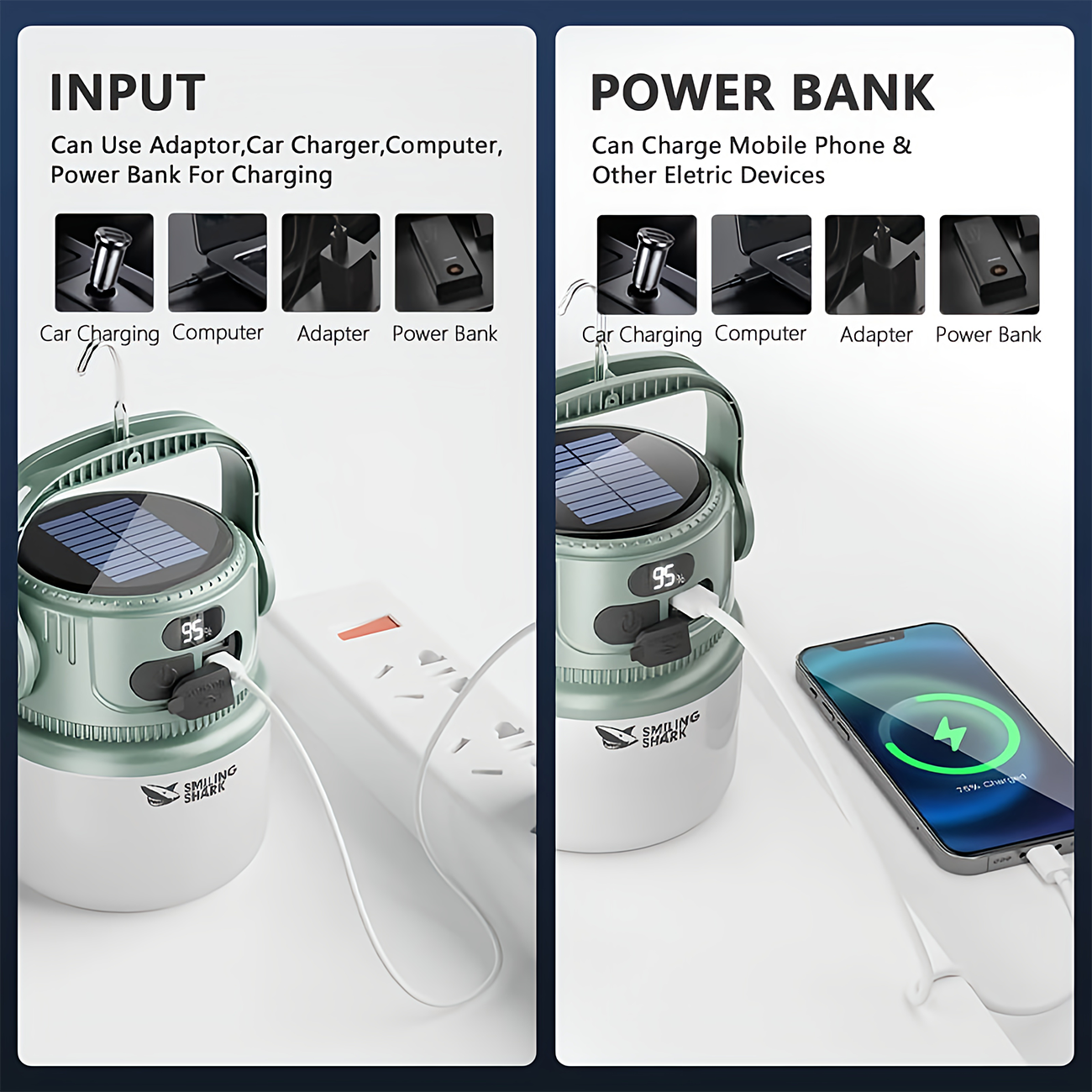 لامپ شارژی و چراغ کمپینگ خورشیدی ضدآب و پاوربانک اسمایلینگ شارک مدل LY8269