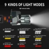 | داری 9 حالت نوردهی مختلف | سفید قوی روشن-سفید قوی روشن-سفید چشمک زن-زرد قوی روشن-زرد چراغ قوه قوی زرد روشن - قرمز چشمک زن قوی قرمز روشن - SOS |