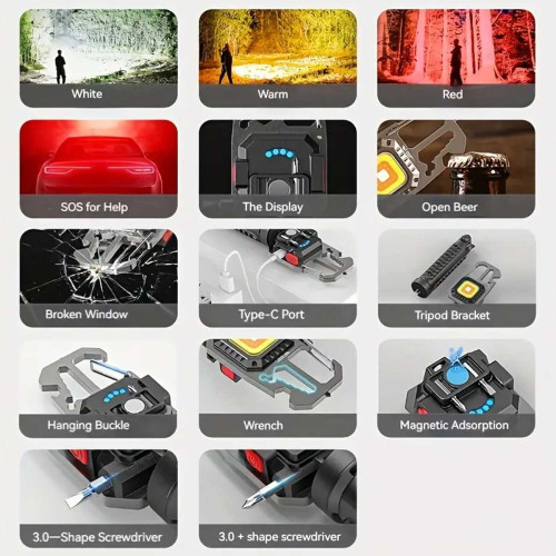 | حالت های نوردهی مختلف | 7 حالت قوی، متوسط، ضعیف، نور گرم قوی، نور گرم متوسط، نور قرمز و نور قرمز حالت خطر SOS |
