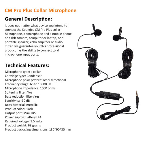 مشخصات فیزیکی Soundco CM Pro Plus Wired Lavalier Microphone
