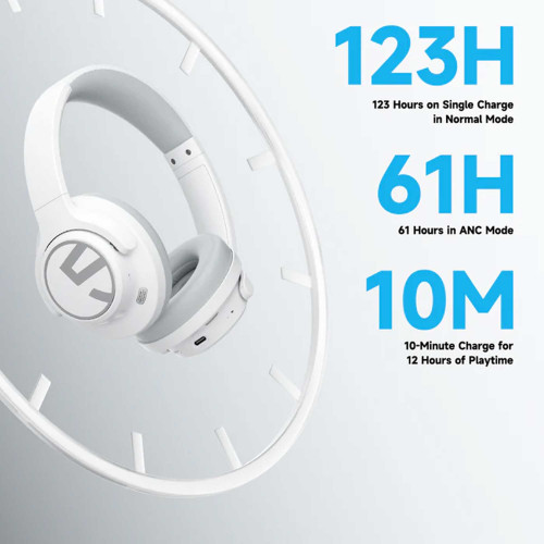 برای شارژ کامل این هدفون حدود 2 ساعت زمان نیازه. بعد از شارژ کامل، تا 123 ساعت در حالت عادی و 61 ساعت با ANC فعال کار میکنه.