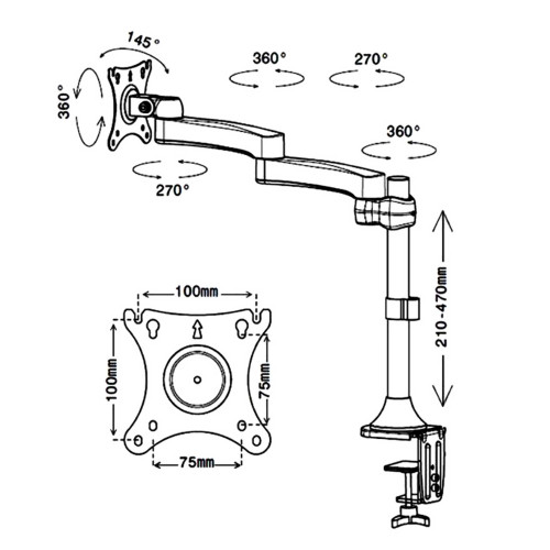 این پایه دارای قابلیت تنظیم ارتفاع تا 435 میلیمتر از سطح میز و دو بازوی متحرکه که به شما اجازه میده مانیتور رو در ارتفاع و زاویه دلخواهتون تنظیم کنید. همچنین، امکان گردش 270 درجهای حول محور Y رو هم داره.