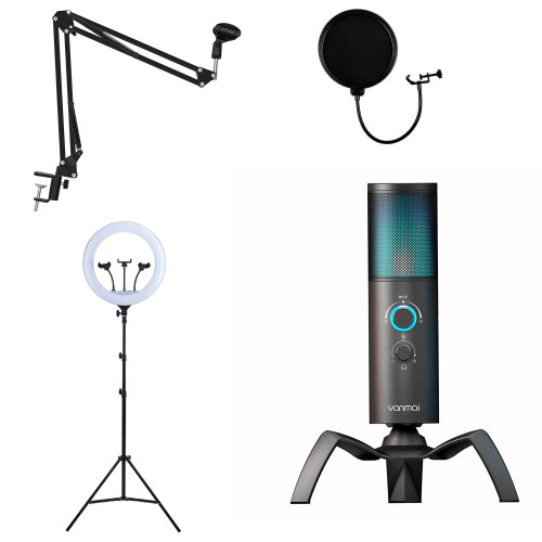 از مهمترین لوازم جانبی که هر پکیج تولید محتوای حرفهای باید داشته باشه، میکروفونها، پایههای میکروفون، پاپ فیلترها و تجهیزات نورپردازی هستن. ما برای انتخاب این تجهیزات سعی کردیم که بهترین و باکیفیتترین مدلها رو پیدا کنیم تا شما بتونین به راحتی و با اطمینان خاطر محتواهای بینقصی رو تولید کنین. در ادامه با محصولات این پکیج کاربردی بیشتر آشنا میشیم: