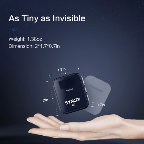 میکروفون یقهای بیسیم مدل G2.A1 از برند سینکو تنها با وزنی معادل 39 گرم و ابعادی به اندازه 17*42*52 میلیمتر طراحی و ساخته شده. این محصول به عنوان یک میکروفون یقهای قابل حمل و بیسیم هست که وزن و ابعاد کمی داره و برای استفادههایی که نیاز به حرکت آزادانه داره، بسیار مناسبه.