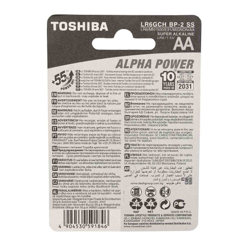 TOSHIBA SUPER ALKALINE ALPHA POWER AA*2