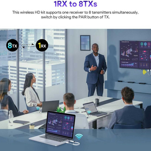این دانگل بیسیم با محدوده عملکرد تا ۳۰ متر امکان انتقال تصویر با کیفیت بالا و بدون افت سرعت یا تاخیر رو فراهم میکنه. منبع تغذیه این دستگاه از طریق پورت USB تأمین میشه، بنابراین میتونین بهراحتی از پورت لپتاپ یا حتی آداپتور شارژر برای روشن نگه داشتن اون استفاده کنین.