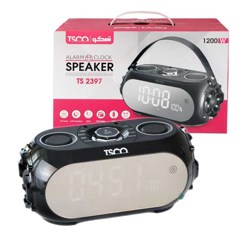 اسپیکر بلوتوثی تسکو مدل TS2397 از سری اسپیکرهای بلوتوثی حرفهای قابل حمل شرکت تسکو است که علاوه بر اینکه بیس قوی و کیفیت بالایی دارد، از آن میتوانید به عنوان رادیو، ساعت زنگدار و هولدر نگهدارنده گوشی استفاده کنید.