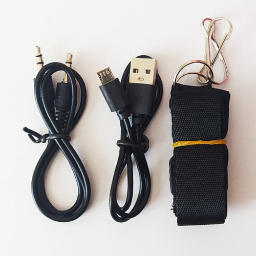 | اقلام همراه اسپیکر | برگه راهنما | کابل AUX | کابل Micro USB | بند رو دوشی |