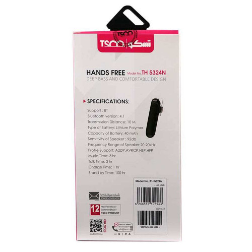 مشخصات فنی هندزفری تک گوش بی سیم تسکو مدل TH-5324N