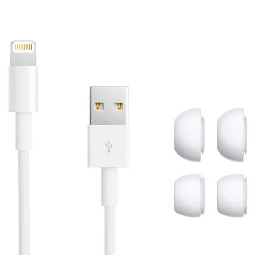 اقلام همراه هدفون | دفترچه راهنما | ۲ جفت سری سیلیکونی | 1 عدد کابل Lightning |