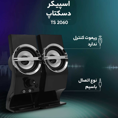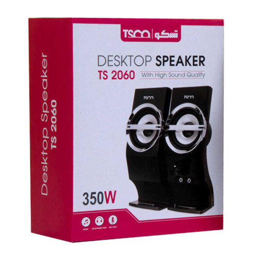 اسپیکر تسکو مدل TS-2060 محصولی هستش که به صورت باسیم قابل استفاده خواهد بود و از رابط جک 3.5 میلی متری برخورداره و توان واقعی اون 2*3W میباشد. این اسپیکر توان اسمیش روی 350 وات بسته شده. محدوده عملکرد عملیاتی اون بدون مانع تا 10 متر هست و فرکانس پاسخگویی فوقالعاده 180-18000 هرتز رو داره. نسبت سیگنال به نویز (SNR) 80 دسی بل هست و برای تامین انرژی به برق شهری 220 وات نیاز داره. این اسپیکر دارای درگاه خاصی نبوده و از کابلهای AUX پشتیبانی میکنه. این اسپیکر ریموت کنترل نداره اما میتونین از روی خود این اسپیکر نسبت به کم و زیاد کردن صدا و یا تعویض موسیقی هم اقدام کنین.