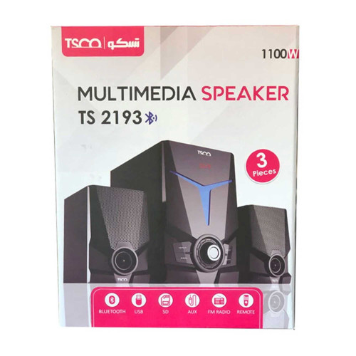 اسپیکر بلوتوثی تسکو مدل TS-2193 محصولی هستش که به صورت باسیم و هم به صورت بیسیم قابل استفاده خواهد بود و از رابطهای جک 3.5 میلی متری، پورت USB و بلوتوث برخورداره و توان واقعی اون 3W و 2*8W میباشد. این اسپیکر توان اسمیش روی 1100 وات بسته شده و از ورژن نسخه 4.2 هم پشتیبانی میکنه. محدوده عملکرد عملیاتی اون بدون مانع تا 10 متر هست و فرکانس پاسخگویی فوقالعاده 40-20000 هرتز رو داره. نسبت سیگنال به نویز (SNR) 72 دسی بل هست و برای تامین انرژی به برق شهری 220 وات نیاز داره. این اسپیکر دارای درگاه SD کارت بوده و از کابلهای AUX پشتیبانی میکنه. علاوه بر اینکه دارای ریموت کنترل هست میتونین از روی خود این اسپیکر نسبت به کم و زیاد کردن صدا و یا تعویض موسیقی هم اقدام کنین.