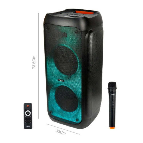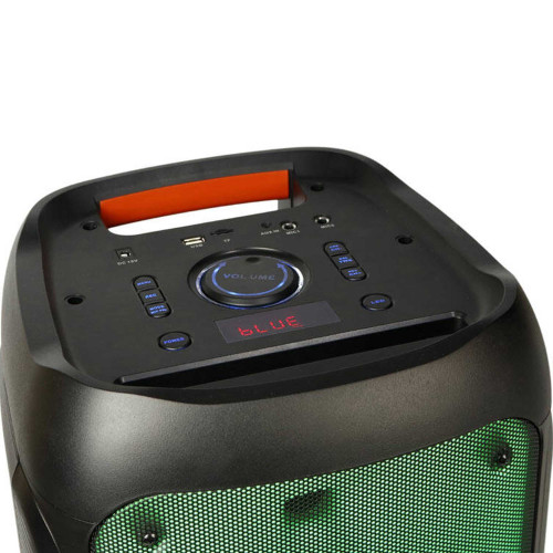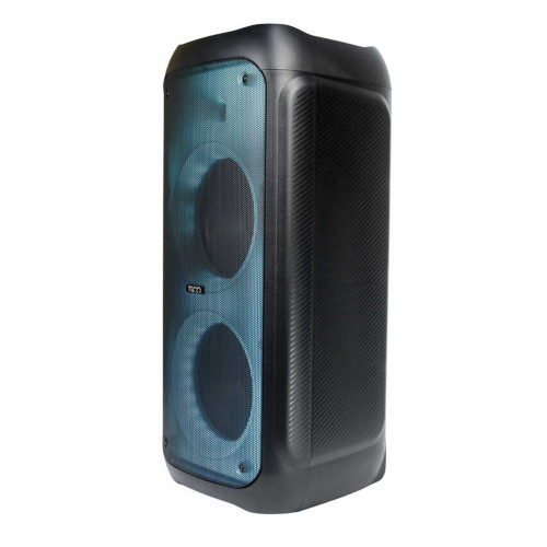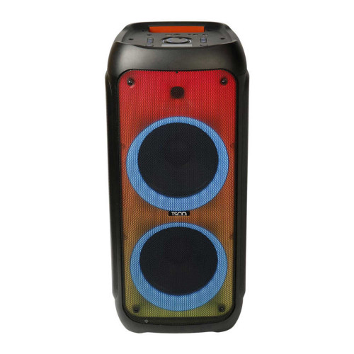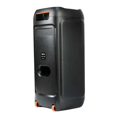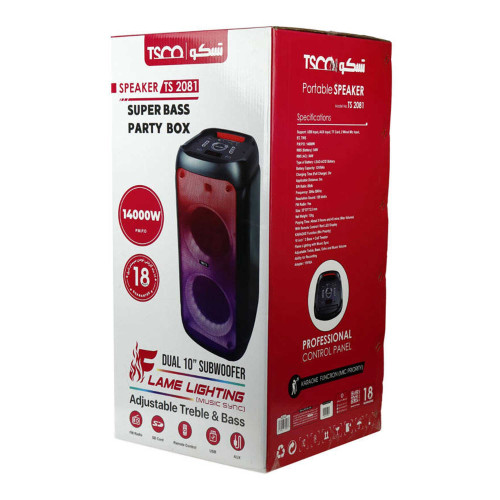 اسپیکر قابل حمل TS 2081 وزنی برابر با 11.2 کیلوگرم و ابعاد 320×320×720 میلیمتر داره. برای این محصول بدنهای از جنس پلاستیک باکیفیت در نظر گرفته شده که نسبت به فشار، ضربه و شرایط دیگه کاملا مقاومه. از اونجایی که این اسپیکر ابعاد بزرگی داره و وزنش هم بالاست، برای قسمت بالایی اون یه دسته طراحی شده تا جابهجایی این محصول سادهتر بشه.