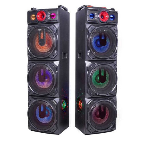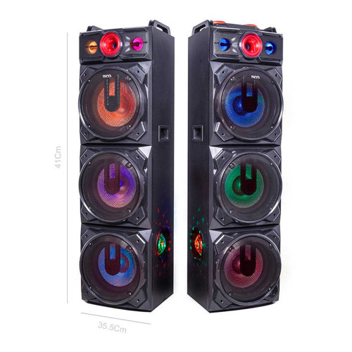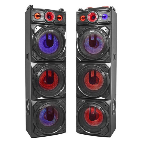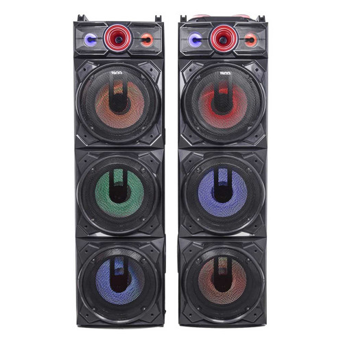 اسپیکر بلوتوث تسکو با TS 2095 وزن 26.15 کیلوگرم و ابعاد 34.5×41×143 سانتیمتر تولید شده و بدنه اون از جنس ABS یا پلاستیک مقاومه که خیلی محکمه. توی این محصول 2 اسپیکر و 6 ووفر قرار داده شده که خروجی صدای بینظیری دارن. بدنه این اسپیکر هم کلیدهای مکانیکی داره که امکان تغییر افکت ECHO و BASS، تنظیم حجم صدا، شروع ضبط صدا و سایر تنظیمات مورد نیاز برای استفاده از این محصول رو بهتون میدن. همچنین از قابلیتهای دیگه این اسپیکر میتونیم به موارد زیر اشاره کنیم: