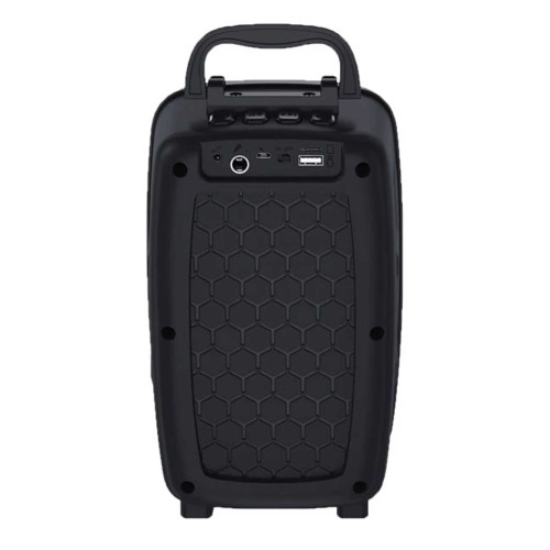 روی بدنه اسپیکر TS-2309 تعدادی دکمه مکانیکی قرار دارن که برای تنظیمات راحتتر در نظر گرفته شدن. البته این محصول ریموت کنترلی داره و میشه از این طریق هم تنظیمات رو انجام داد. بهعلاوه درگاه USB، میکرو اس دی، ورودی AUX و ورودی میکروفون 6.35 میلیمتری برای این اسپیکر در نظر گرفته شده؛ یه دسته هم داره که حمل اون رو سادهتر کرده. روی بدنه این مدل نور پسزمینه RGB رو میبینیم که ظاهرش رو موقع کار کردن زیباتر میکنه.