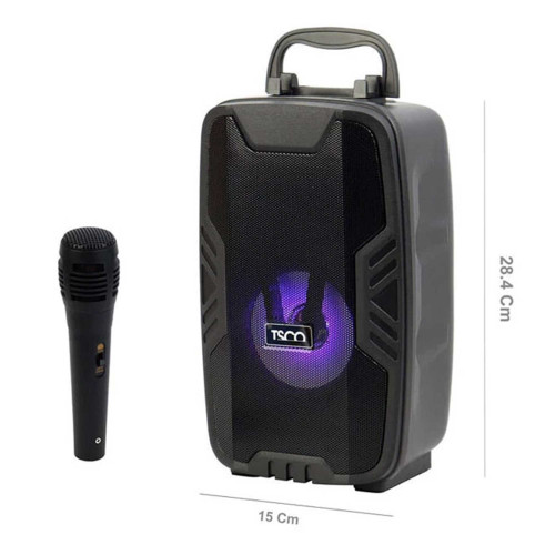 اسپیکر قابل حمل TS 2309 نمونه پرتابل و قابل حمله که با وزن 945 گرم و ابعاد 106×150×284 میلیمتر تولید شده. این محصول بدنهای از جنس ABS یا پلاستیک مقاوم داره که این ویژگی کمک میکنه تا در برابر خیلی از شرایط مقاوم باشه. همرا با این محصول یه میکروفون هم به شما داده میشه که با سیم به اون وصل میشه.