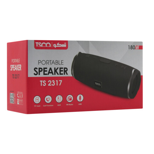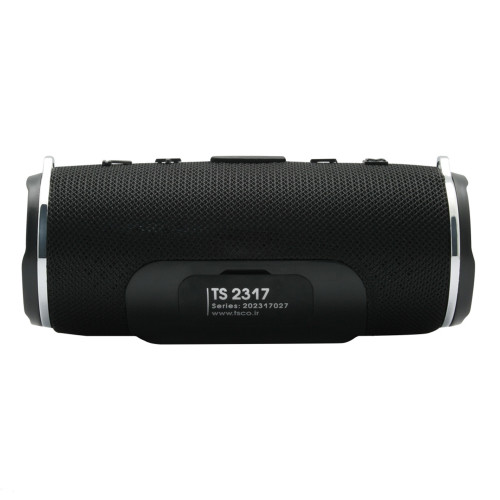 اسپیکر قابل حمل بلوتوثی مدل TS 2317 محصولی از شرکت تسکو است. این محصول با طراحی استوانه ای شکلی که دارد، به راحتی قابل حمل است، زیرا وزن آن تنها 305 گرم است و ابعاد آن 69 X X 72 180 میلی متر هست. همچنین در انتهای دو سر این اسپیکر قطعه ای استیل تعبیه شده است که برای وصل کردن بندی که همراه اسپیکر و درون جعبه آن قرار دارد مورد استفاده است. همچنین بر روی بدنهی این اسپیکر کليد هايی برای کم یا زیاد کردن صدا، رد کردن موزیک، نگه داشتن موزیک یا پخش موزیک و مديريت موسيقی تعبیه شده است که علاوه بر زیبایی، سهولت استفاده از آن را دو چندان کرده است. برای متصل شدن به اسپیکر تسکو مدل TS 2317، شما میتوانید از طریق بلوتوث ( بلوتوث نسخه 4.2 ) ، جک 3.5 میلی متری ( aux ) ، USB و TF CARD اقدام کنید و از گوش دادن به موسیقی تان لذت ببرید. لازم به ذکر است که بلوتوث این اسپیکر تا فاصله 10 متری را پشتیبانی میکند. حداکثر توان خروجی اسپيکر تسکو مدل TS 2317 6 وات هست که این توان برای یک اسپیکر در این ابعاد مقدار قابل قبولی است. باند این اسپیکر صدایی با وضوح 83 دسی بل تولید میکند. این محصول انرژی خود را از یک باتری لیتیوم پلیمری تامین میکند. ظرفیت این باتری MAH 1200 هست و در مدت زمان 2 الی 3 ساعت شارژ باتری کاملا پر میشود و در حالت استندبای میتواند 24 ساعت شارژ خود را حفظ کند. از دیگر ویژگی های این اسپیکر، پشتیبانی آن از رادیو FM است. این محصول در دامنه فرکانس HZ-20KHZ70 با دریافت باکیفیت سیگنال کانال ها، برنامه های رادیویی را با صدایی عالی و شفاف برای شما پخش می کند.