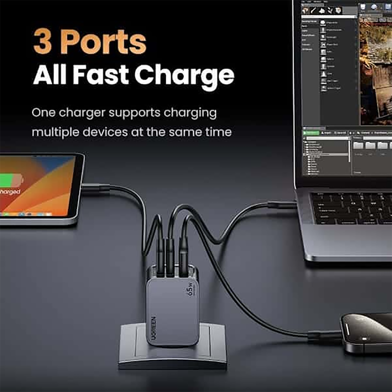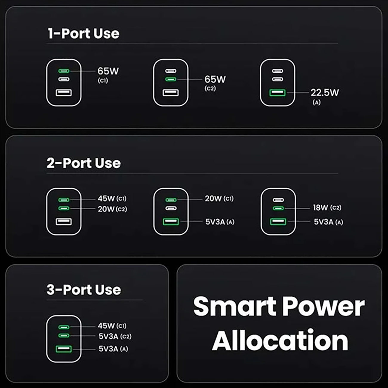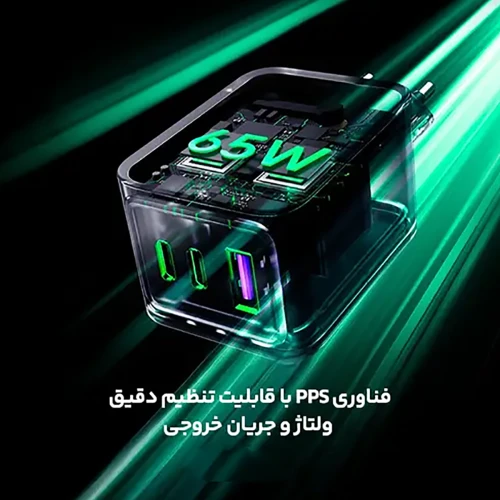 | ولتاژ خروجی پورت USB-C1 / C2 | 12 ولت ⎓ 3 آمپر, 15 ولت ⎓ 3 آمپر, 20 ولت = 3.25 آمپر, 5 ولت ⎓ 3 آمپر, 9 ولت ⎓ 3 آمپر, حداکثر 65 وات |