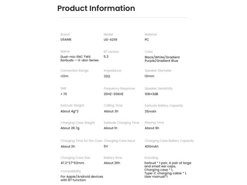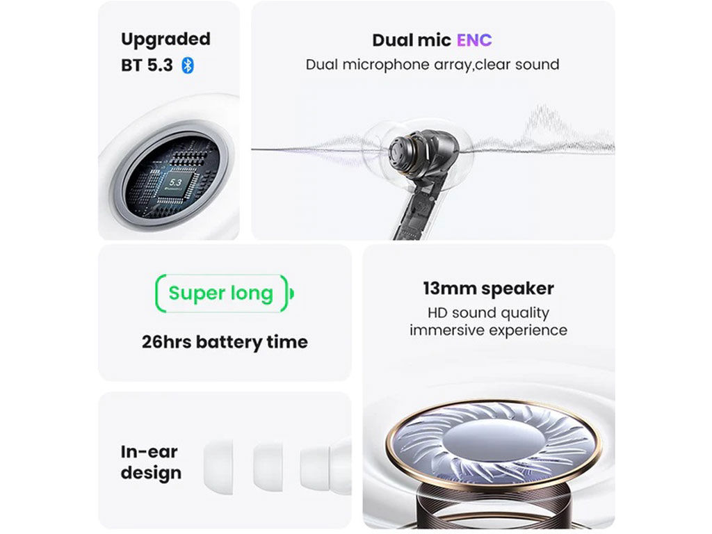 - حداکثر شارژدهی هندزفری با احتساب شارژ باتری کیس تا 26 ساعت