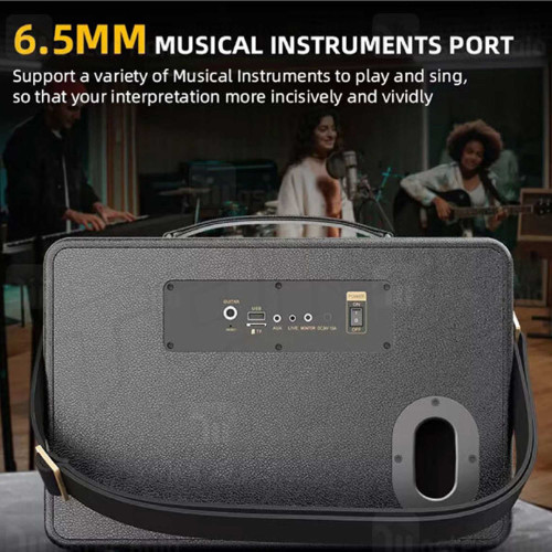 اسپیکر بلوتوثی K6S از بلوتوث نسخه 5.0 برای ارتباط بیسیم استفاده میکنه که این نسخه از بلوتوث امکان ارتباط پایدار و بدون قطعی رو فراهم میکنه. توان واقعی این اسپیکر 100 وات هست که صدایی بسیار قدرتمند و با کیفیت رو به کاربران ارائه میده. محدوده عملکرد بلوتوث این اسپیکر تا 10 متره که به شما آزادی عمل بیشتری در استفاده از اون میده. این اسپیکر دارای درگاه حافظه و درگاه ورودی میکروفون هست و همراه با یک میکروفون خارجی عرضه میشه که مناسب برای سخنرانیها، کارائوکه و اجرای زنده هست. باتری داخلی این اسپیکر با ظرفیت 15000 میلیآمپر ساعت امکان پخش طولانیمدت رو فراهم میکنه و با نشانگر میزان شارژ، همیشه از وضعیت باتری مطلع خواهید بود.