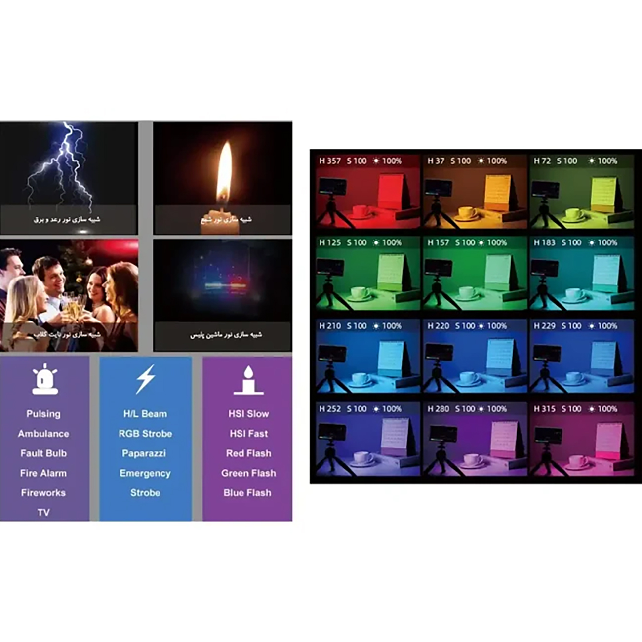 - دمای رنگ: 2500K-9000K