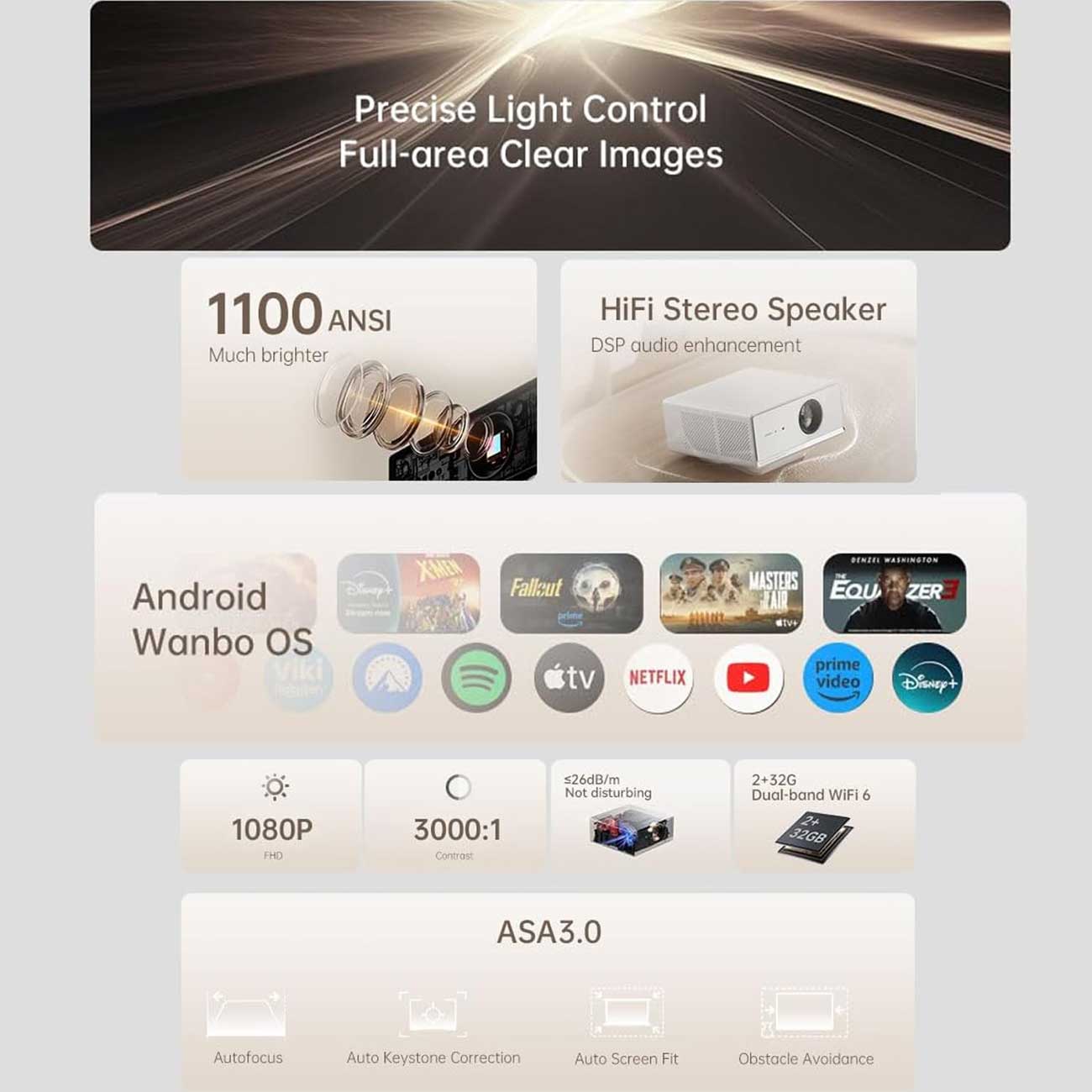 | سیستم خودکار | ASA 3.0 (Auto Focus, Keystone, Obstacle Avoidance, Auto Screen Fit) |