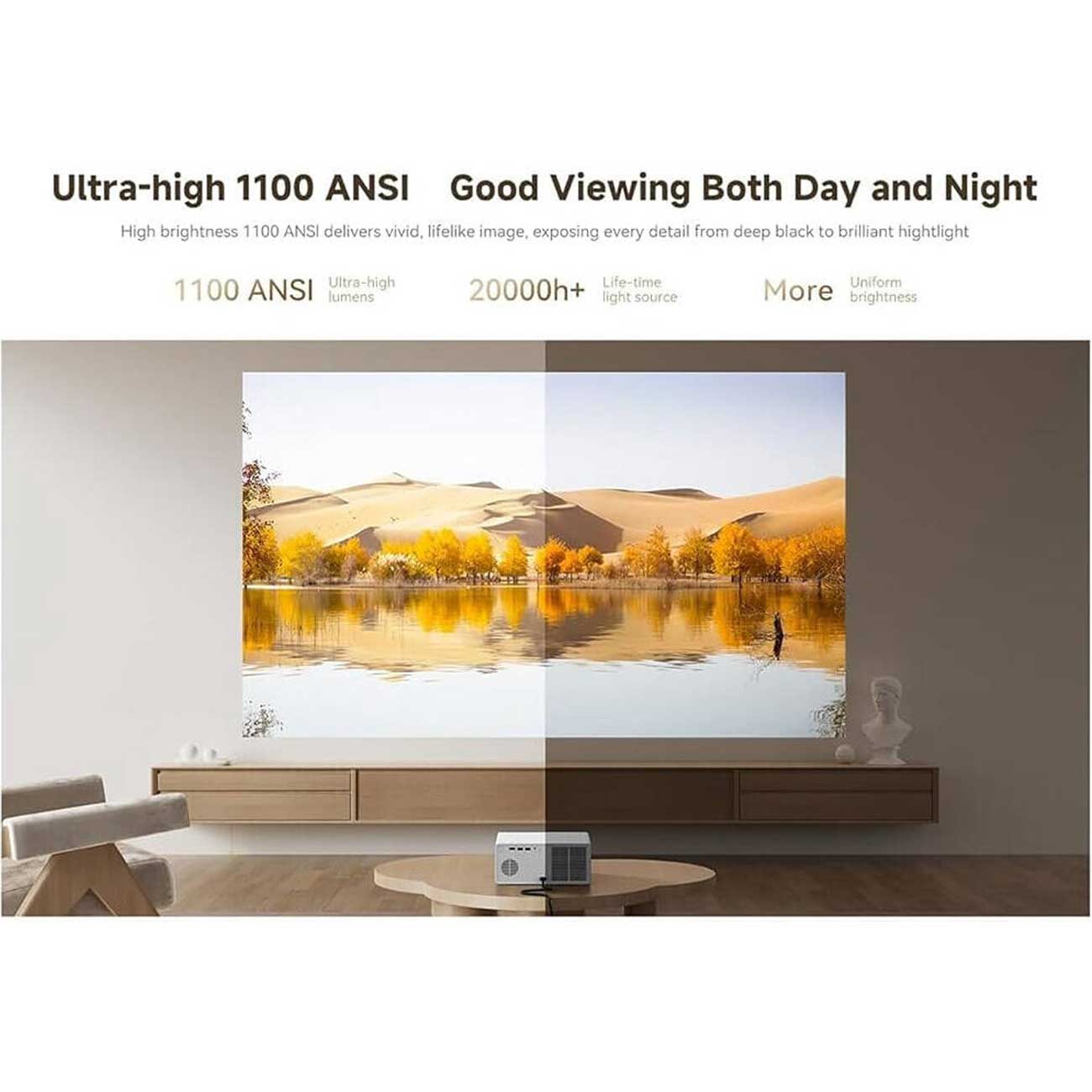 - روشنایی 1100 ANSI لومن، حتی برای استفاده روزانه