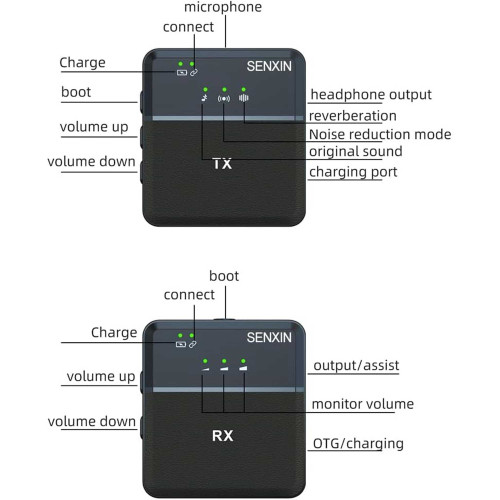 این مدل دارای نشانگر LED برای نمایش وضعیت شارژ و اتصال، کلید قطع و وصل میکروفون و درگاه خروجی هدفون برای مانیتورینگ همزمان صدا هست. همچنین امکان تنظیم صدای مانیتورینگ وجود داره، اما قابلیت تنظیم گین و فیلتر نرمکنندگی صدا در این مدل در نظر گرفته نشده.