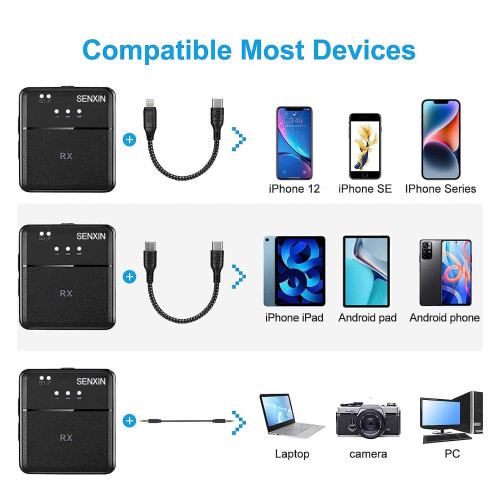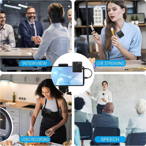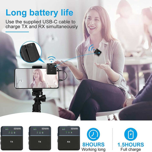 این میکروفون به دلیل داشتن دو فرستنده و یک گیرنده، امکان ضبط همزمان دو صدا رو فراهم میکنه که برای مصاحبههای دو نفره یا ضبط دیالوگها در تولید محتوای ویدیویی فوقالعاده مناسبه. از طرفی، این مدل با انواع گوشیها، دوربینهای فیلمبرداری و دستگاههای مجهز به درگاه Type-C، Lightning و جک 3.5 میلیمتری سازگاری داره و میشه اون رو به دستگاههای مختلف متصل کرد.