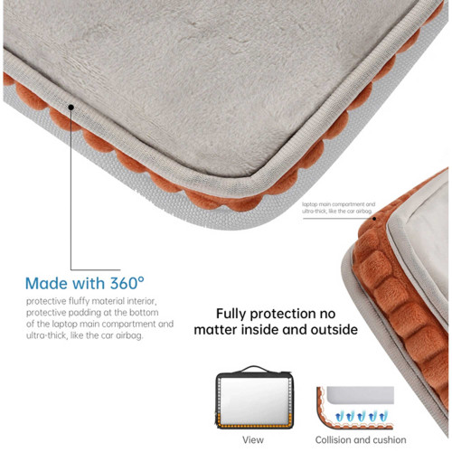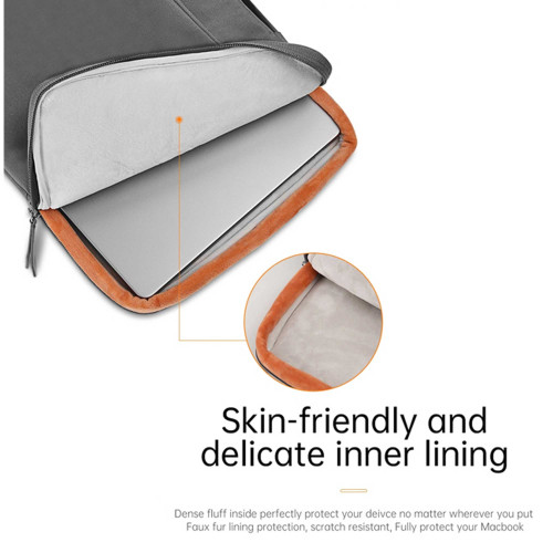 زیپ بادوام YKK که روی این کاور استفاده شده، باعث میشه در طول زمان دچار آسیب یا گیر کردن نشه. دستهی میکروفیبر هم علاوهبر اینکه ضد آبه، حس لطیفی موقع در دست گرفتن منتقل میکنه و کیفیت کلی محصول رو بالا میبره. آستر داخلی هم از خز مصنوعی ساخته شده که علاوهبر حفاظت از لپتاپ، با محیط زیست هم سازگاره.