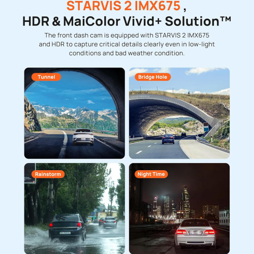 دید در شب | فناوری 70mai Night Owl Vision، کاهش نویز، کنترل تابش، وضوح بالا حتی برای پلاک خودروها |
