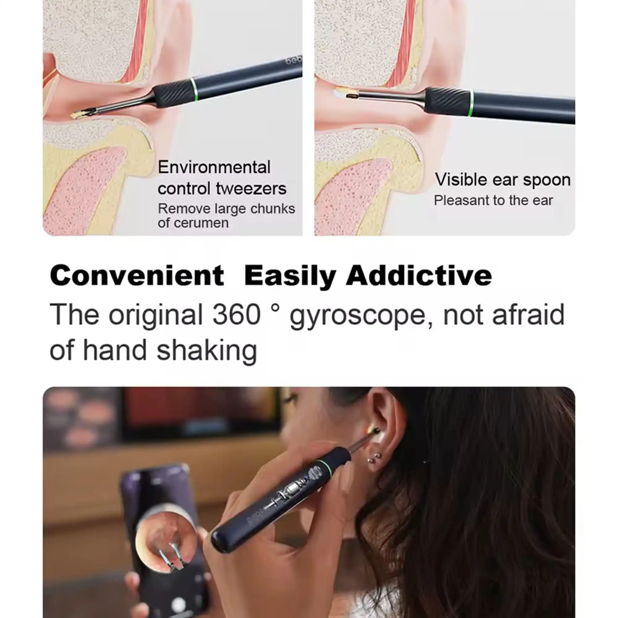 - نورپردازی 6 چراغ LED برای روشنایی کامل داخل گوش
