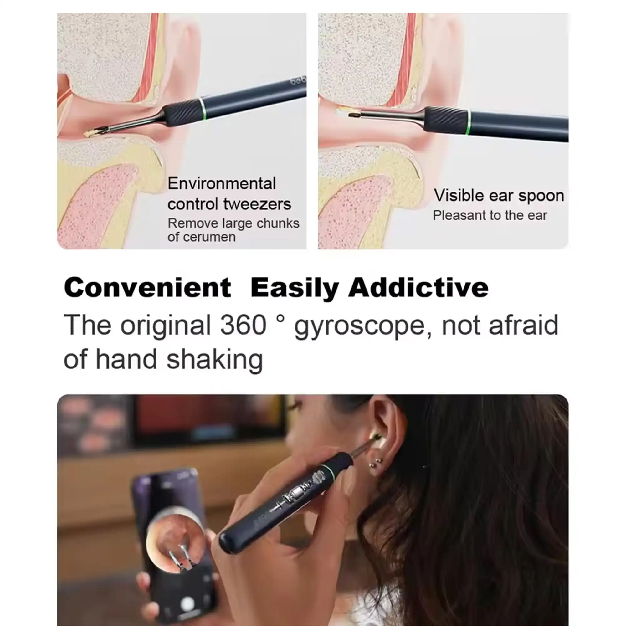 - استفاده آسان, تمیز کردن دقیق و ایمن کانال گوش با دید بصری