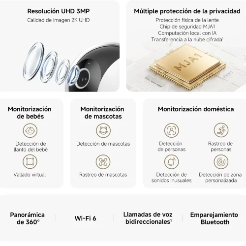 | سایر امکانات و قابلیت ها | پانورامای 360 درجه، تماس صوتی دوطرفه، فنس مجازی، تشخیص منطقه سفارشی، پردازش محلی هوش مصنوعی، ذخیرهسازی ابری، H.265 فشردهسازی و کنترل صوتی با Alexa و Google Assistant |