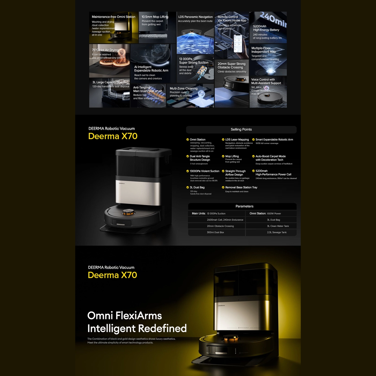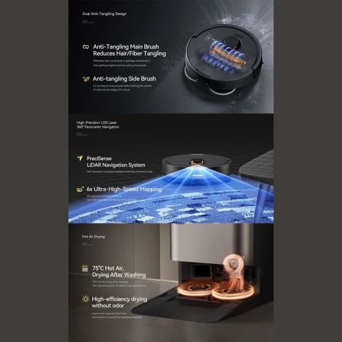 - عملکرد ایستگاه Omni Station : تخلیه زباله، شستشوی پد، خشککن، شارژ آب ربات، شارژ باتری