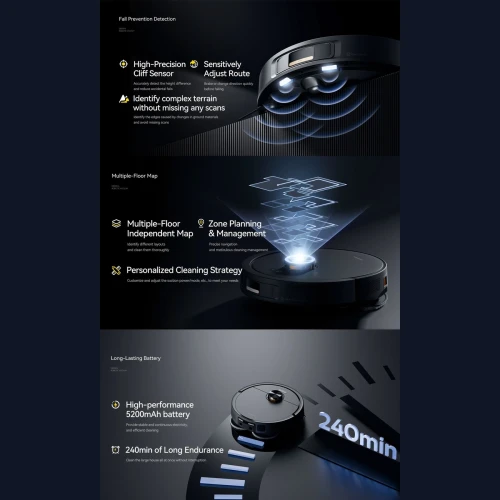 | قابلیتهای اپلیکیشن | دیوارهای مجازی، مناطق ممنوعه (No-Go Zones)، زمانبندی نظافت، انتخاب اتاق خاص |
