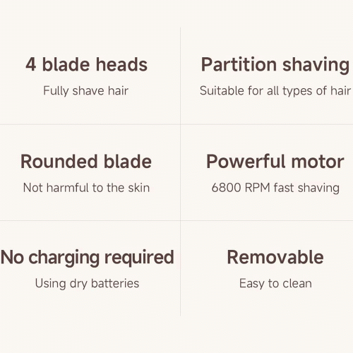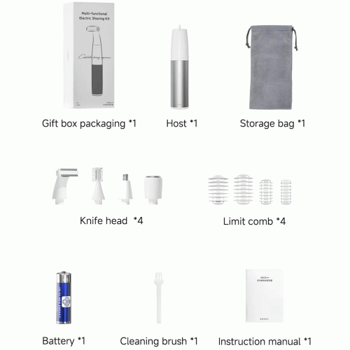 لوازم همراه | دستگاه اصلی، 4 تیغه، 4 شانه محدود کننده طول، باتری AA، برس تمیزکننده، کیف نگهداری، دفترچه راهنما، جعبه هدیه |