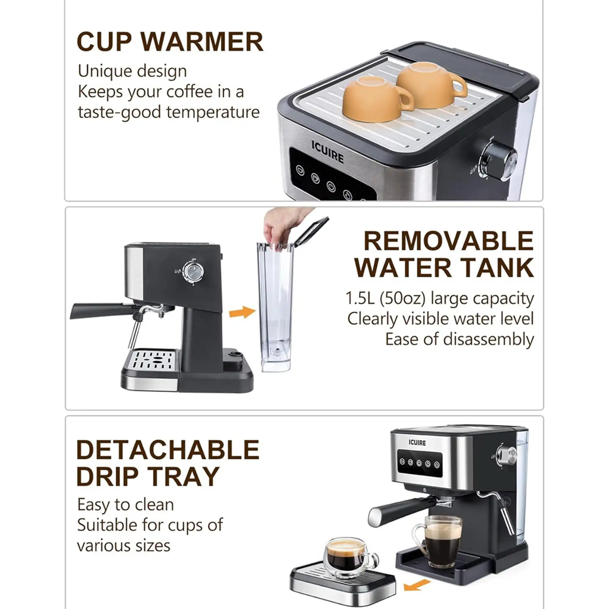 | سایر مشخصات | چند دکمه برای انواع نوشیدنی | دارای صفحه لمسی پیشرفته, میله فومینگ شیر حرفهای |
