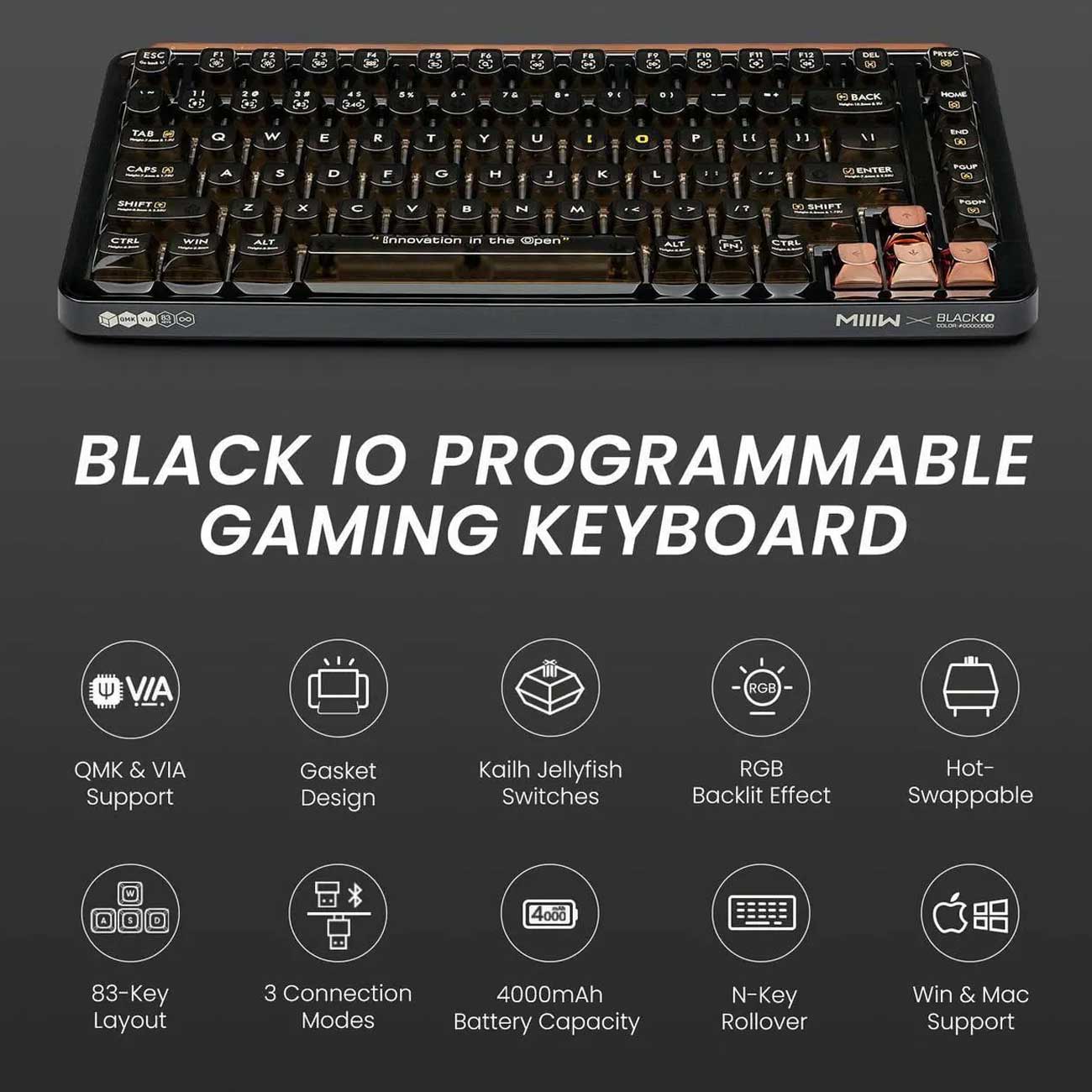 XIAOMI MIIIW BLACK IO 83 Keys Custom Mechanical Gaming Keyboard MWMKB04
