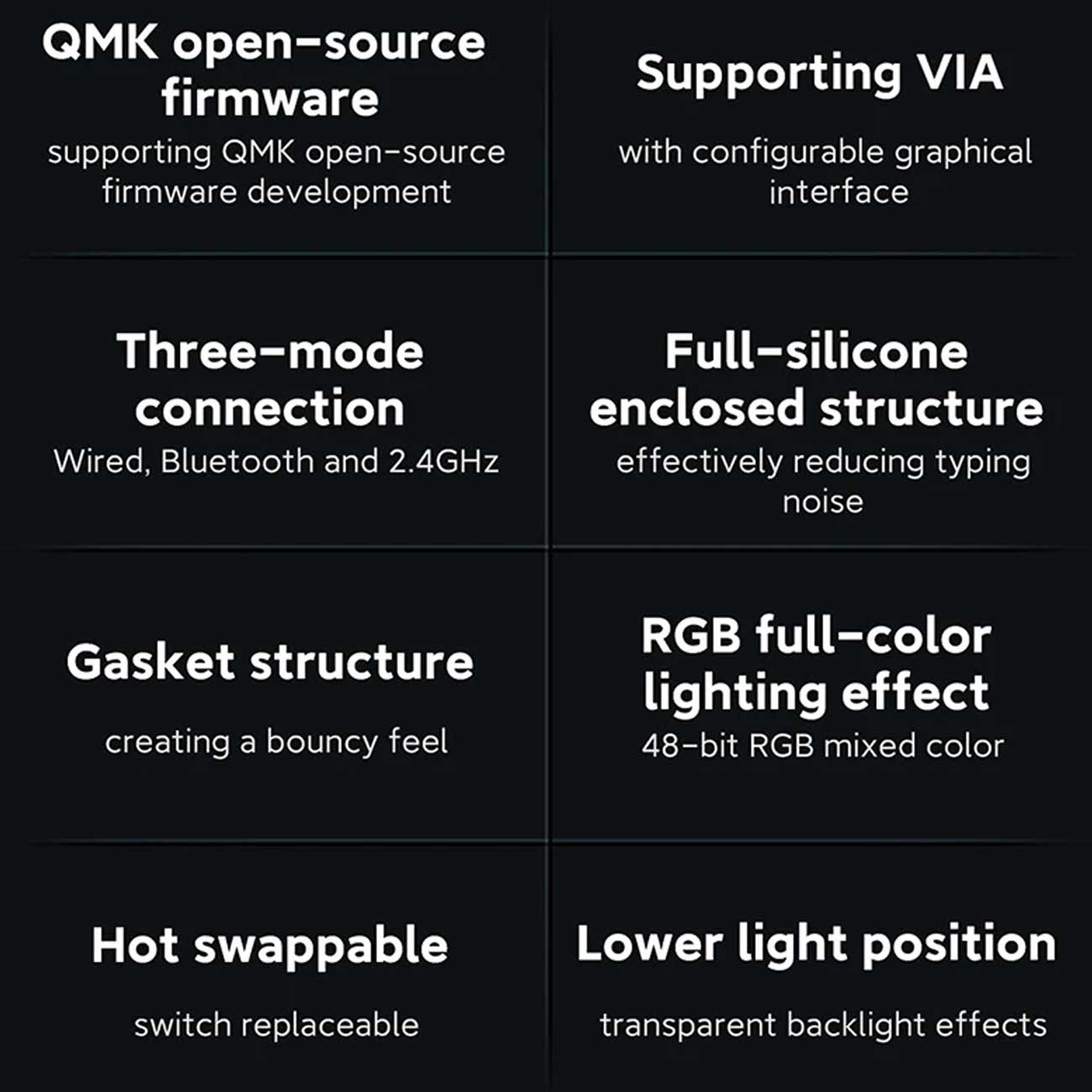- پشتیبانی از QMK و VIA با چیپست ST
