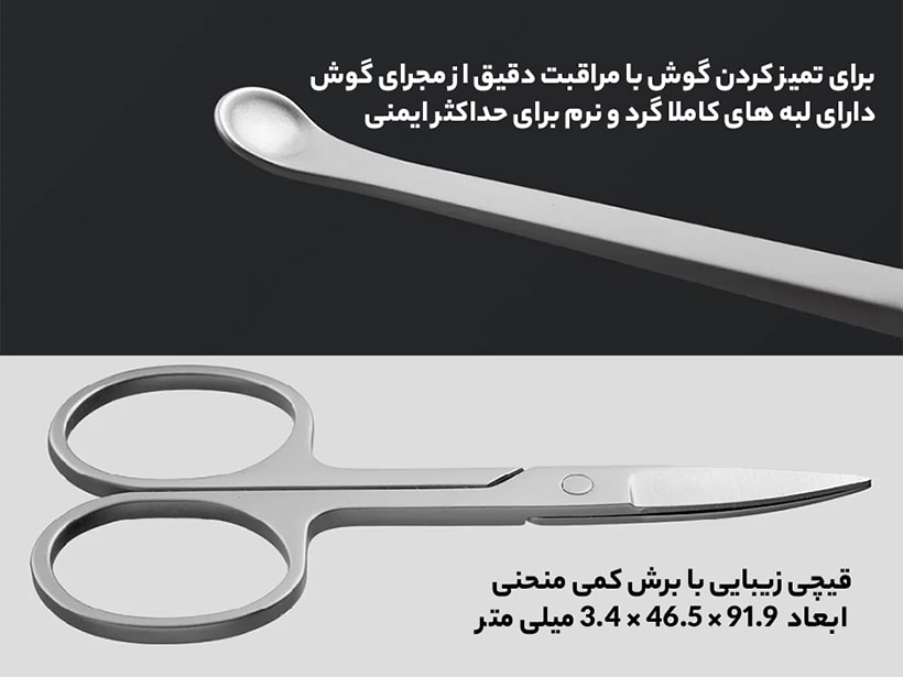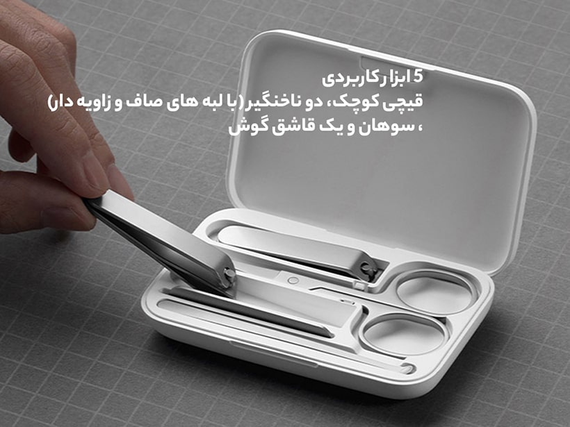 - شامل دو ناخنگیر, سوهان, قیچی کوچک, یک قاشق گوش
