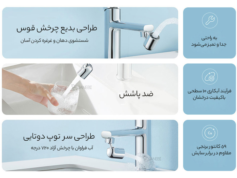 - سرشیر کاهنده مصرف آب با چرخش 720 درجه