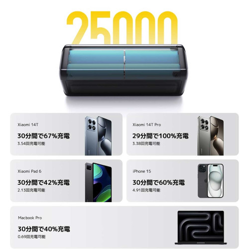 - ظرفیت بالا: ۲۵۰۰۰ میلیآمپر ساعت مناسب برای چندین بار شارژ